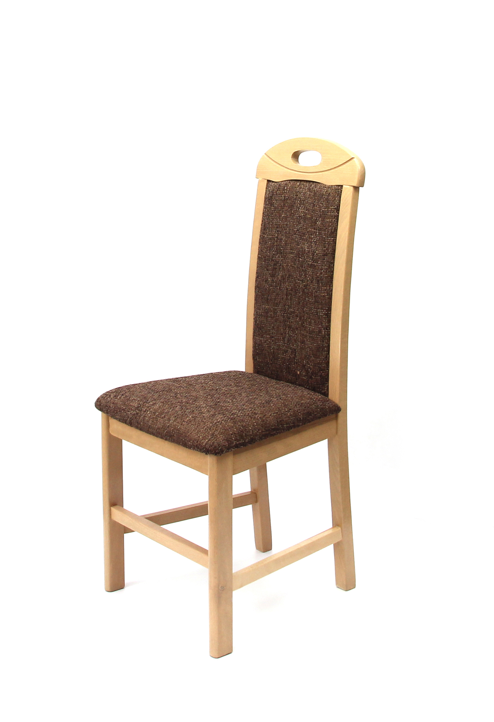 Tömörfa szerkezet, pácolva, lakkozva, textil kárpitos hátlappal és ülőlappal. Méret: 100 x 47 x 47 x 40 cm (magasság x ülőfelület magasság x ülőfelület szélesség x ülőfelület mélység) Bruttó súly: 8 kg Csomagolás: 2 db/kartondoboz.
